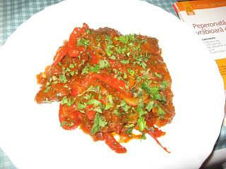 Caliti in ulei ceapa ( eu am folosit unt in loc de ulei ), pana cand se inmoaie, adaugati ardeii si usturoiul tocat marunt.