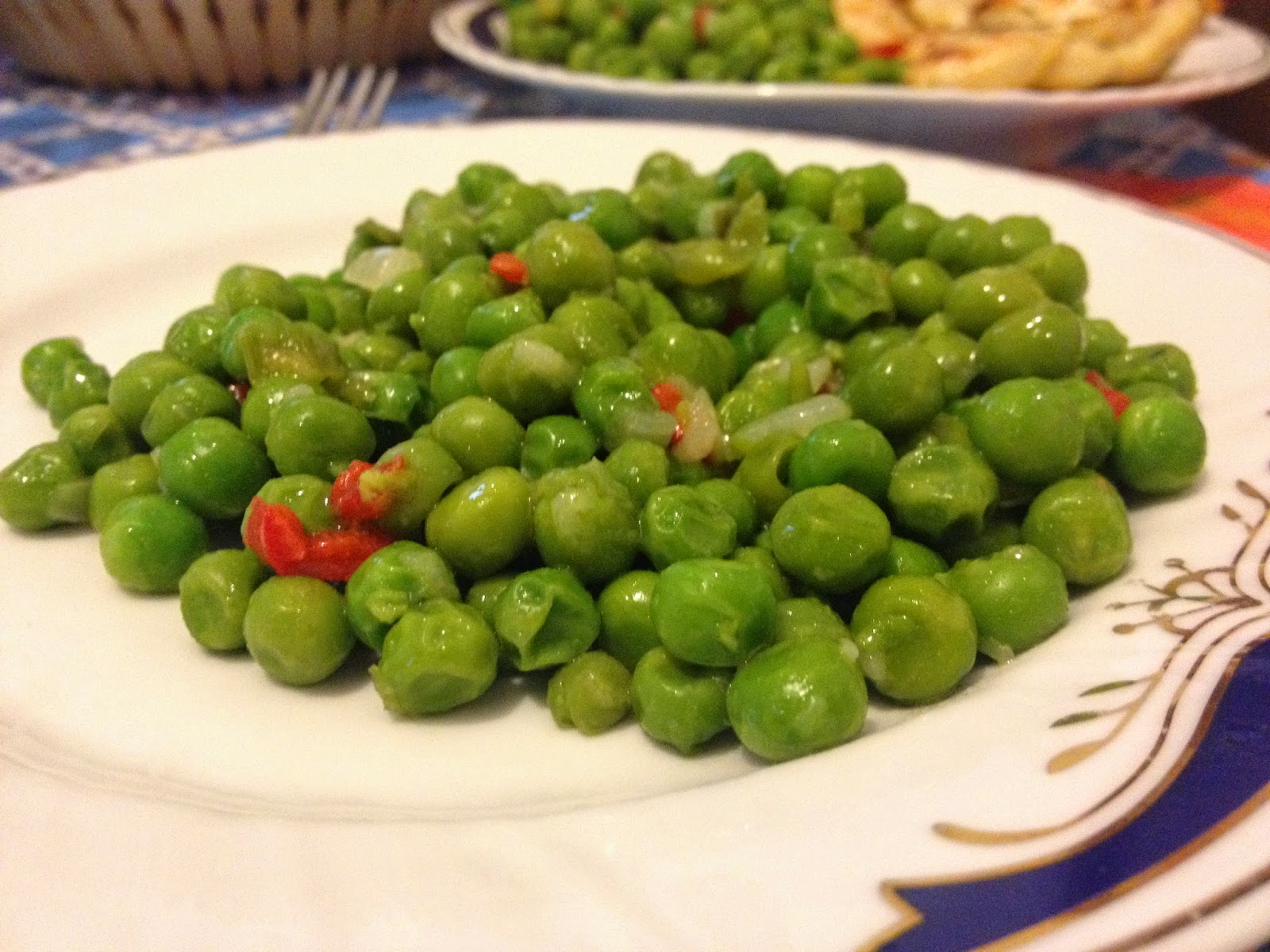 S-a calit ceapa si ardeiul in putin ulei, a adaugat un pic de apa si sare, apoi mazarea si o ceasca de apa.