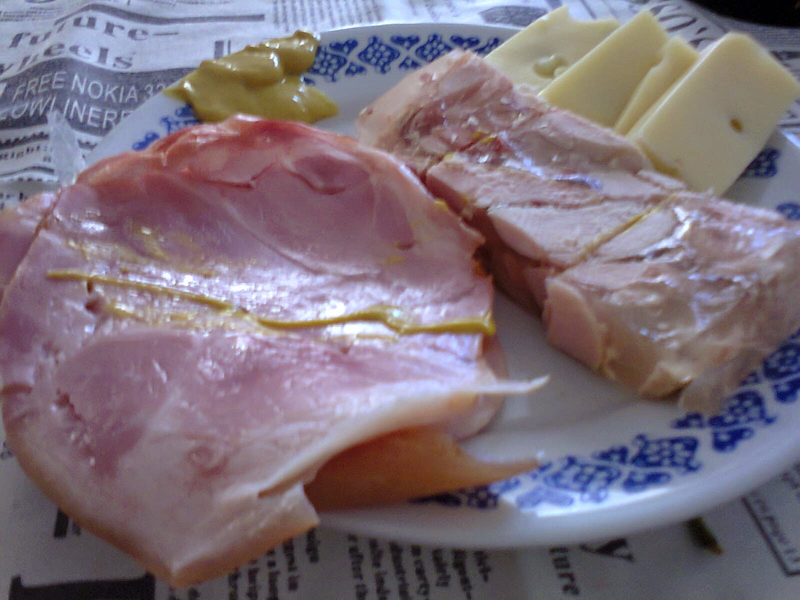 Gustare: 3 felii de mezel, ciolan presat si o bucata de toba de curcan