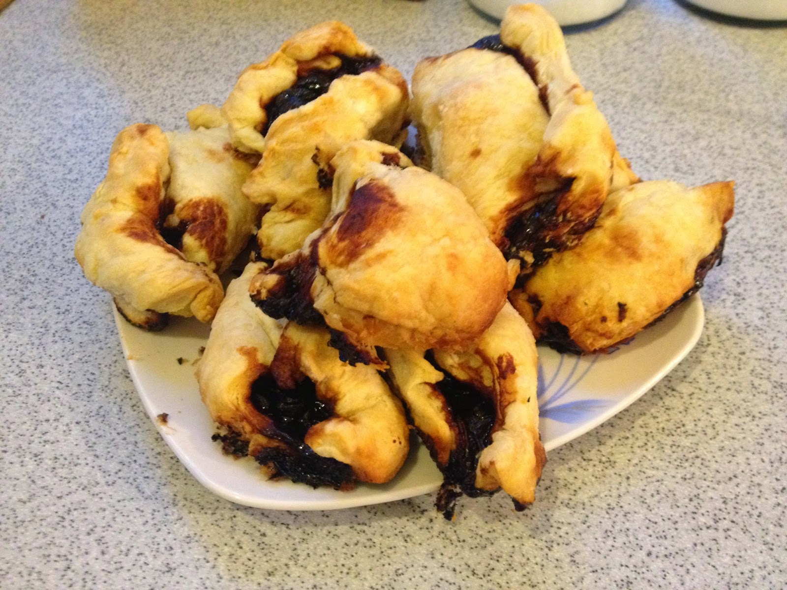 Daca nu aveti aluat gata cumparat, va apucati de treaba ;). In laptele caldut, dizolvati drojdia cu o lingurita de zahar, un praf de sare si 2 linguri de faina, apoi lasati la dospit. Mixati restul de zahar cu 120 g unt tinut la temperaturacamerei, apoi adaugi 2 albusuri si 4 galbenusuri, esenta, coaja rasa de lamaie, si, alternativ, faina si drojdia dospita in lapte. Framantati un aluat elastic si il lasati la crescut, dupa care intindeti aluatul pe masa de lucru, in forma de dreptunghi cu grosimea de 1 cm. In cazul meu, am lasat aluatul cumparat sa se dezghete si l-am intins pe masa de lucru.