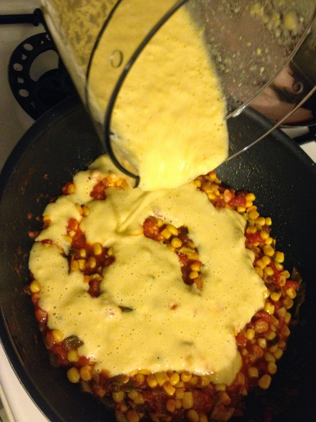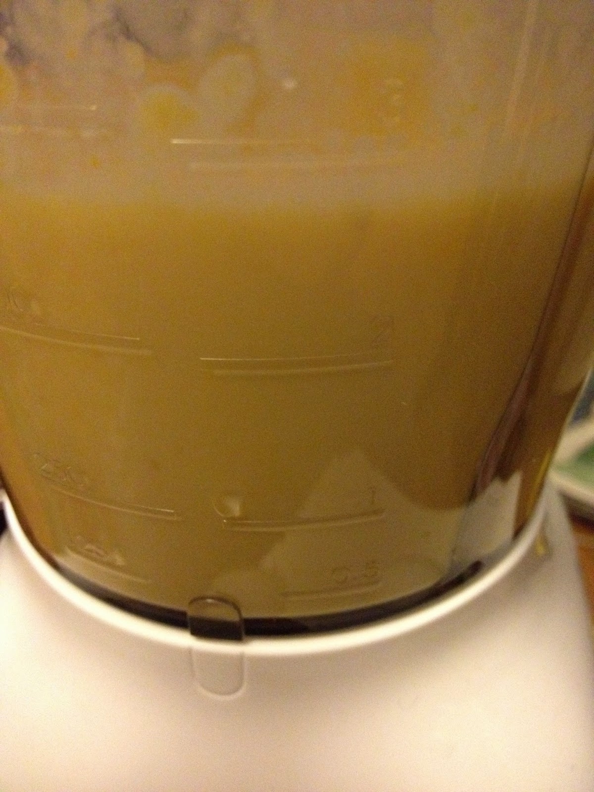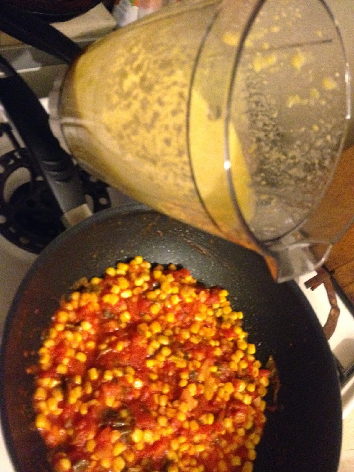 Jumatate din cantitatea de porumb o mixam intr-un blender impreuna cu laptele, pana devine o pasta aurie.