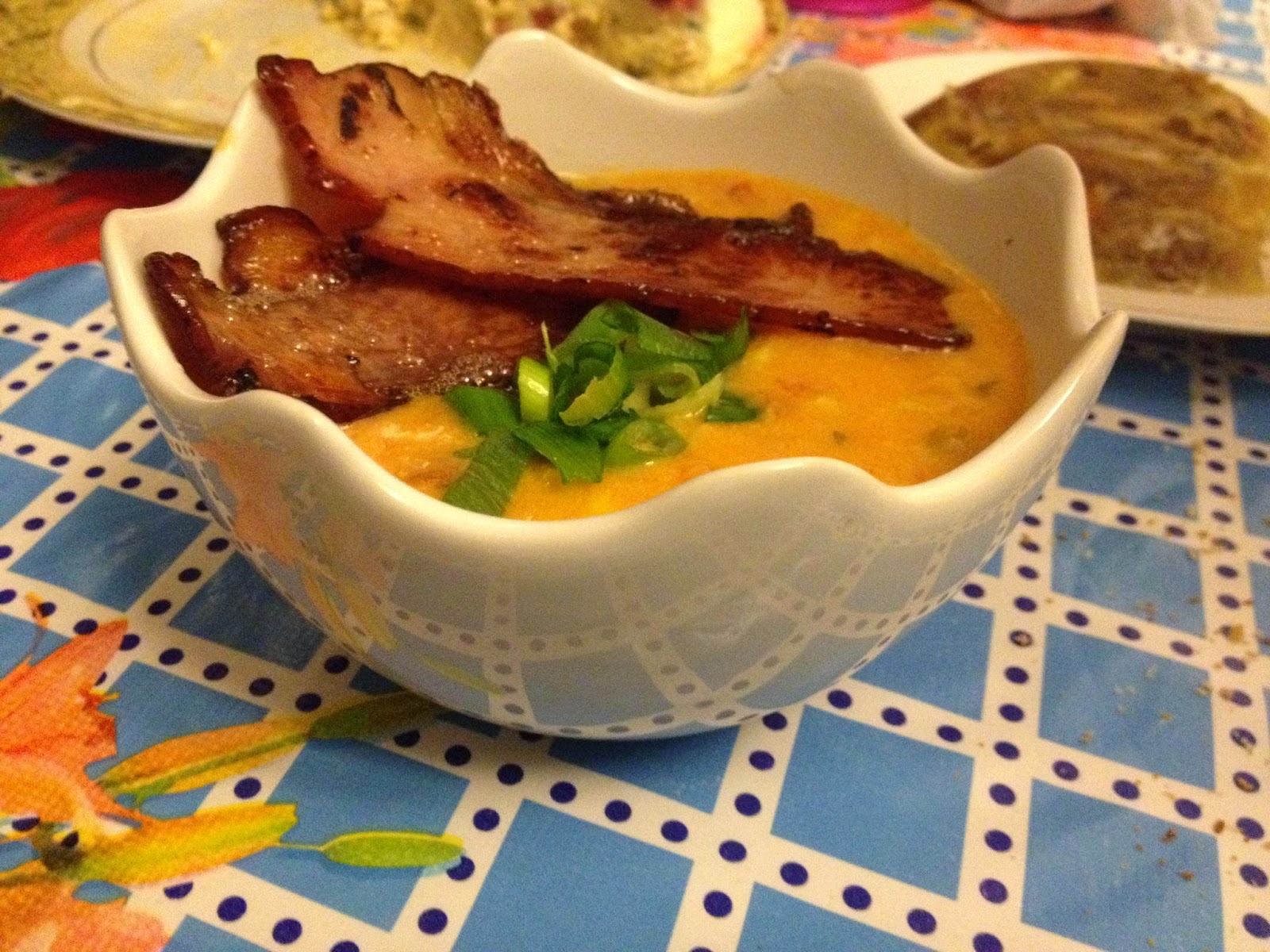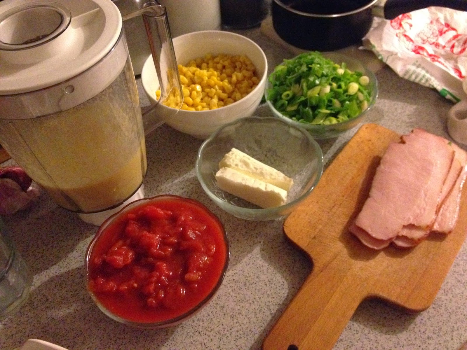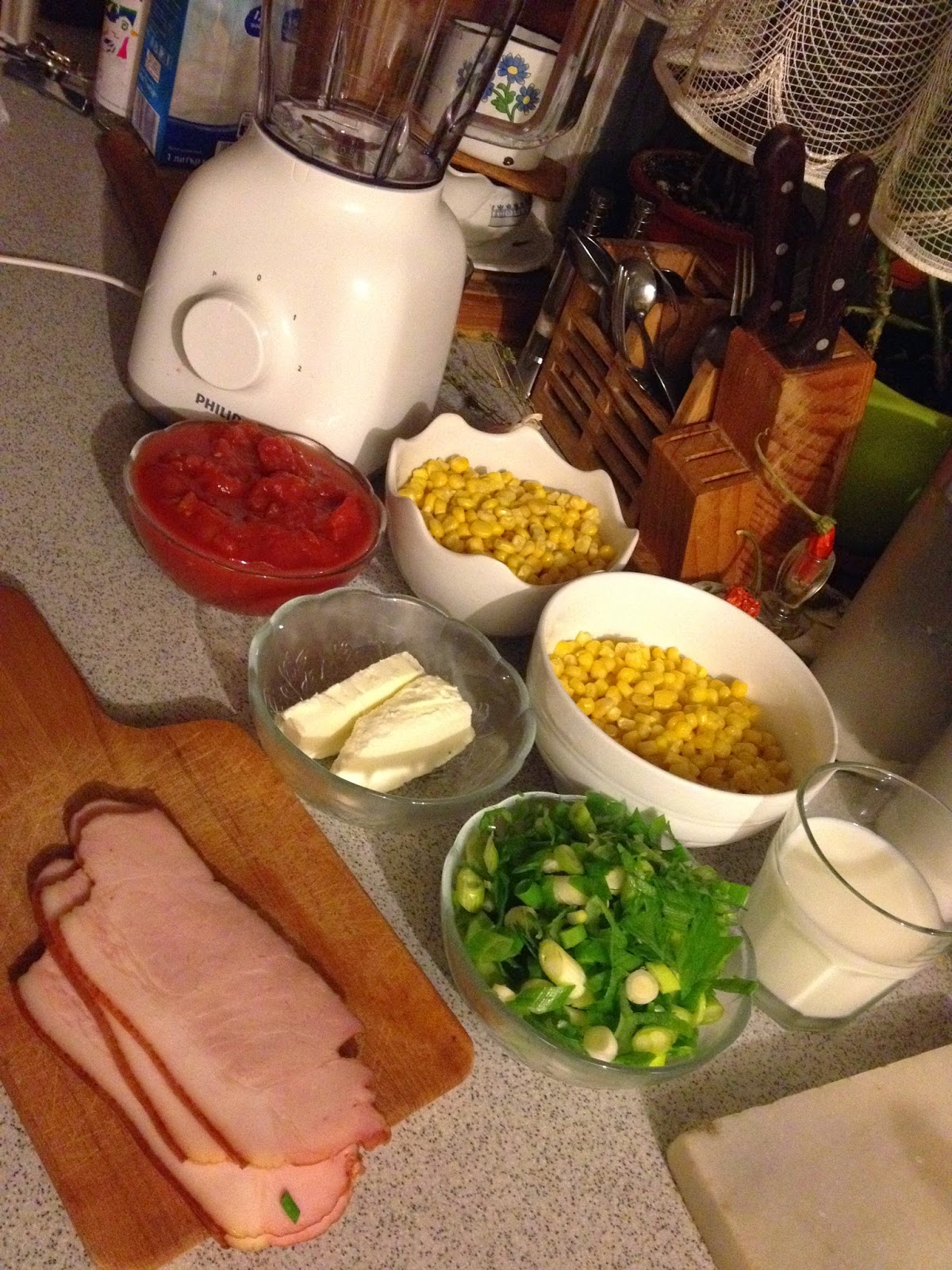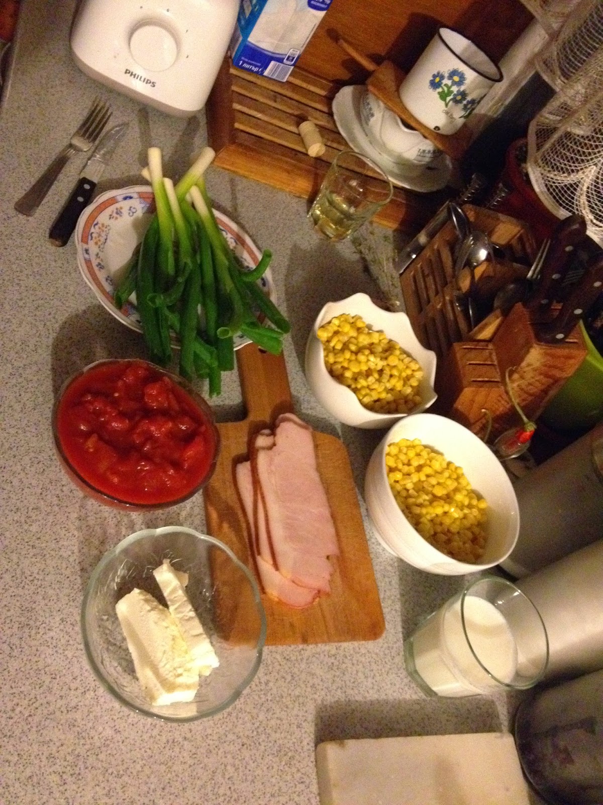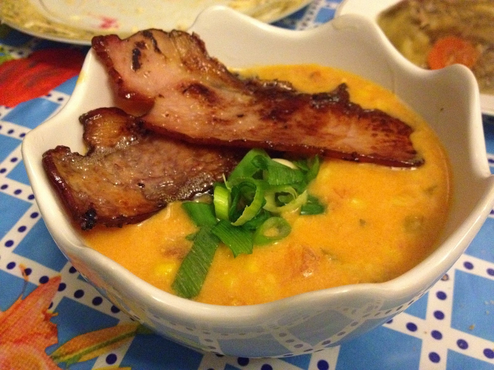A-2-a saptamana cu Caroli: Supa de porumb si sunculita taraneasca de la Caroli cu muschiulet de porc invelit in sunculita taraneasca de la Caroli.