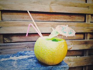 Pentru ca nu mi-a placut Blody Mary, sotul meu a vrut sa mai incercam ceva si anume, cocktail de pepene galben.