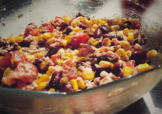 Am strecurat conservele si pur si simplu am amestecat toate ingredientele. Sotului meu ii place foarte mult aceasta salata.