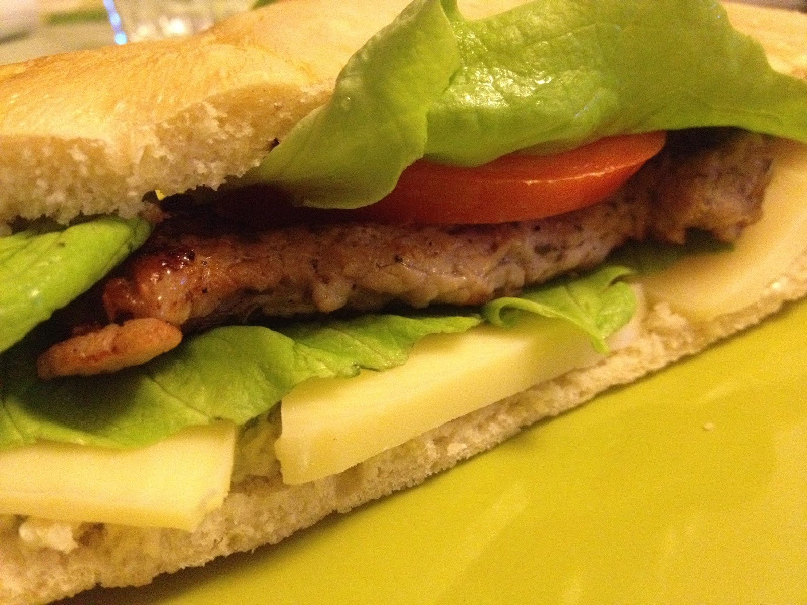 Se face lipia separat sau se cumpara chifla mai inalta, cum doriti. Se prajeste bine carnea, subtire. Se freaca usturoiul cu sare, unt si marar. Am taiat cascavalul felii, rosiile felii, sunca la fel. Am uns lipiile cu amestecul de usturoi, marar si unt. Lipiile au fost calde, asa ca usturoiul cu unt, a venit foarte, foarte bine pe lipia calda, i-a dat un gust deosebit. Apoi le-am facut ca pe un fel de sandvis: am pus peste lipia cu usturoi, sunca, apoi cascavalul, apoi felia de carne, rosia, frunza de salata verde si partea a doua a lipiei. Le puteti aseza in orice ordine va place. Amestecul de usturoi face tot gustul.