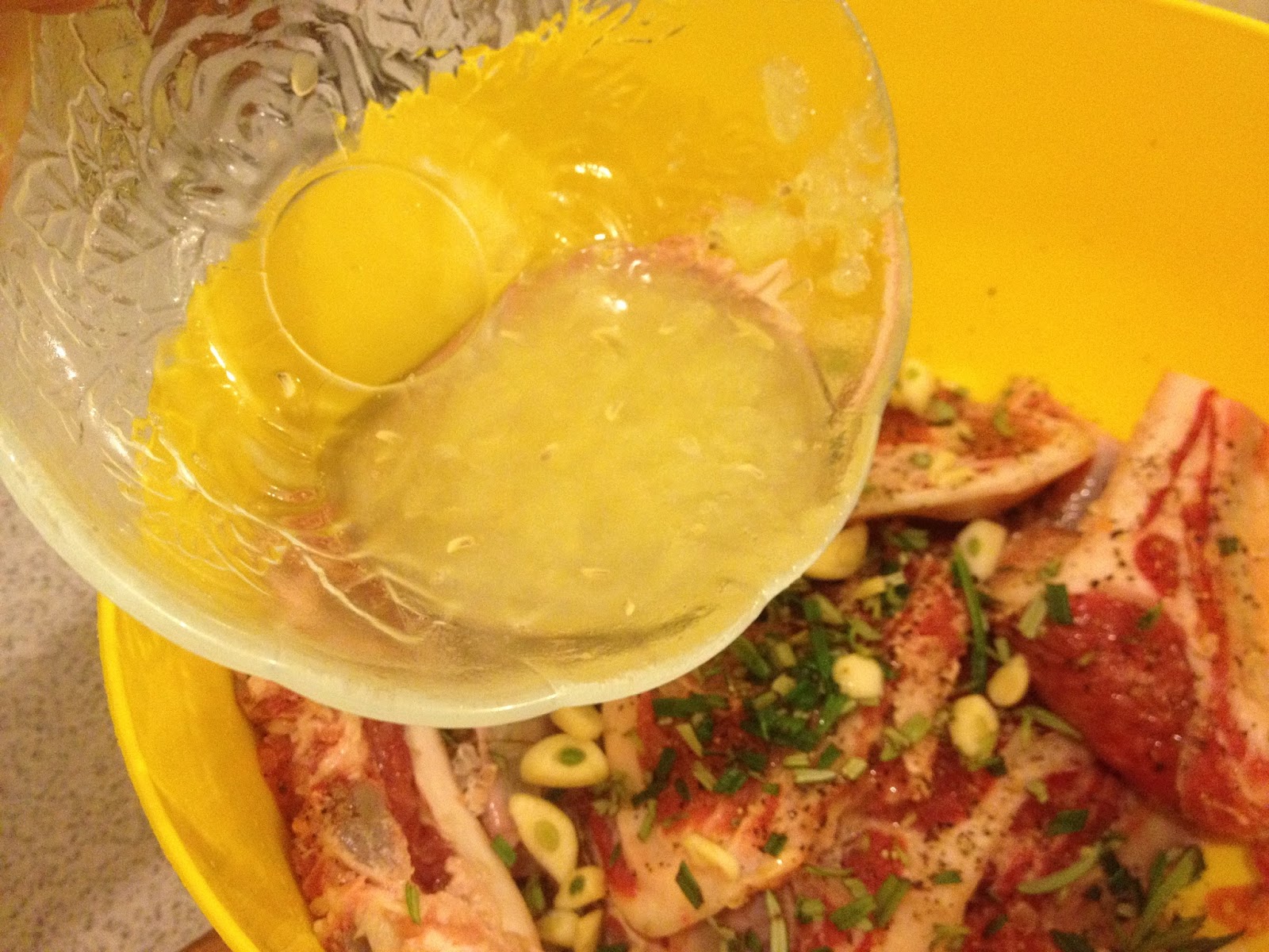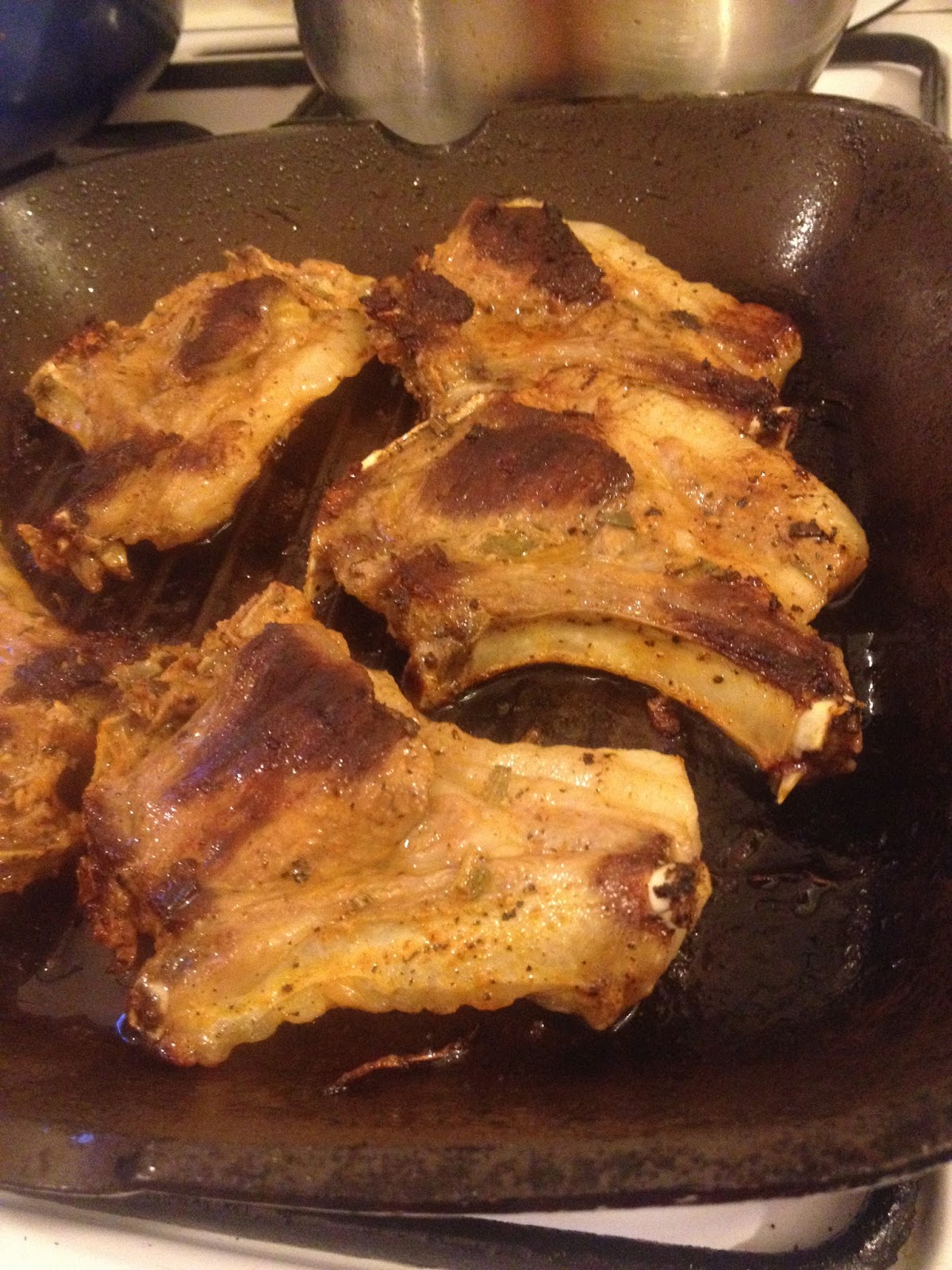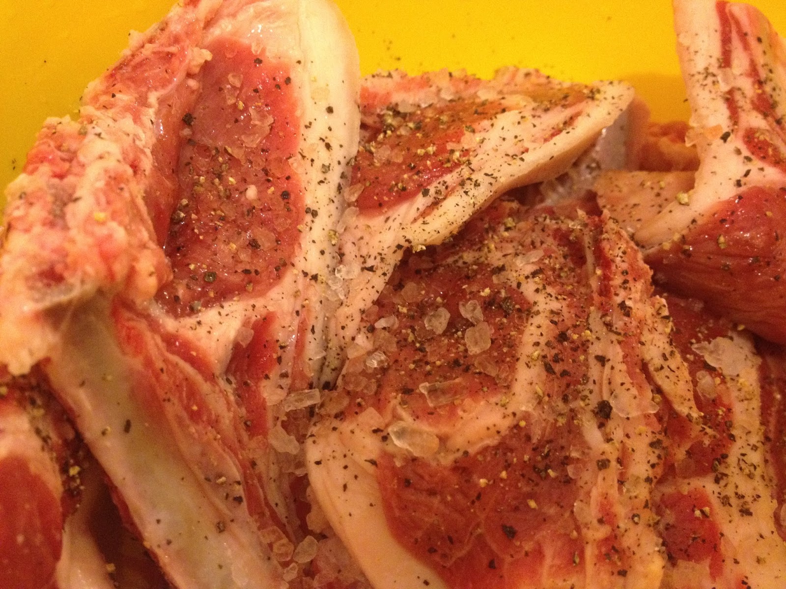 Cu o zi inainte de a gati berbecutul, am pus cotletele la marinat asa: am facut un amestec din putin ulei de masline, sare mare, piper, rozmarin verde tocat marunt (am in ghiveci), usturoi, zeama de la o lamaie, boia dulce afumata si un pic de vin alb sec.