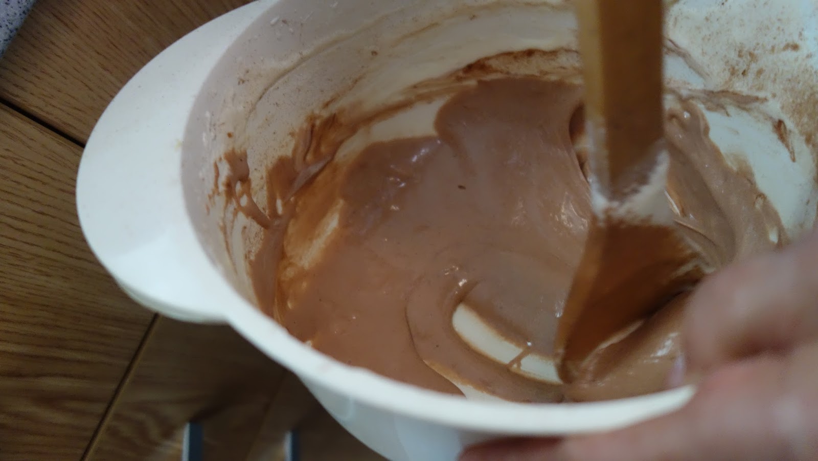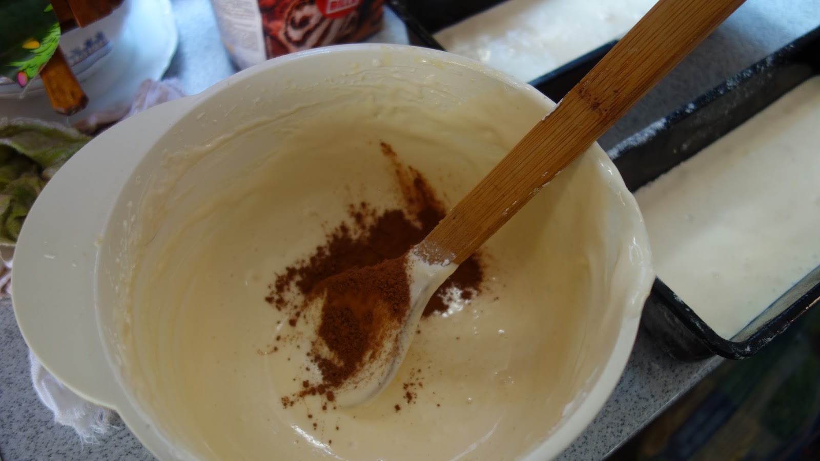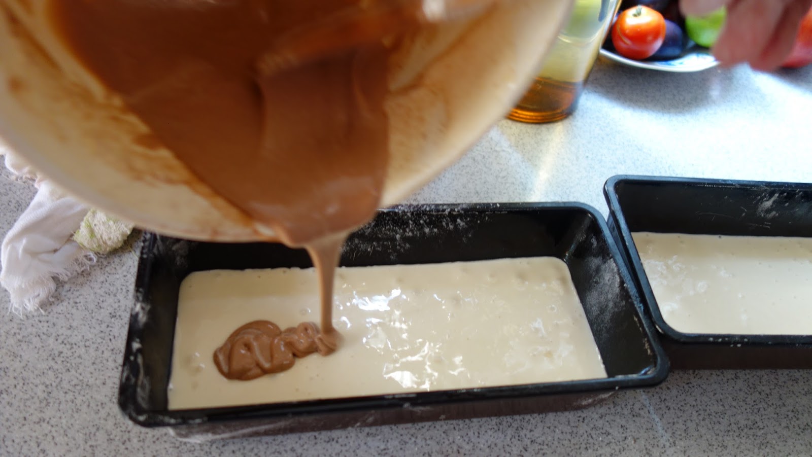 Din aluat, se opreste o cana sau ½ cana peste care se adauga cacao. Dupa ce ati amestecat bine, turnati peste aluatul din tava si modelati frumos cu o furculita, apoi bagati la cuptor.