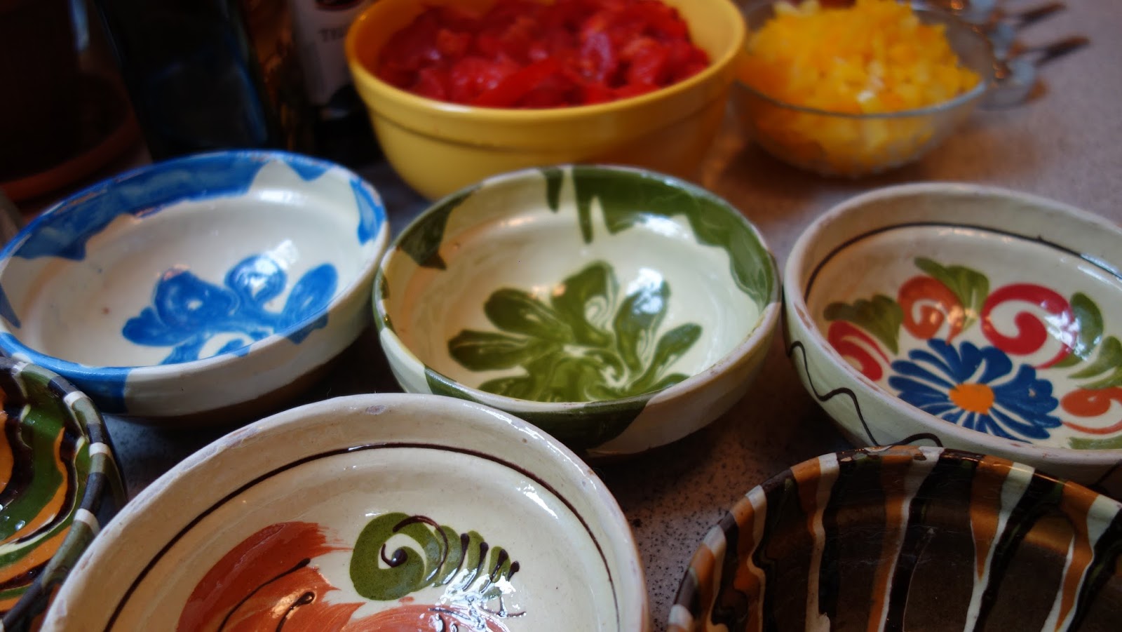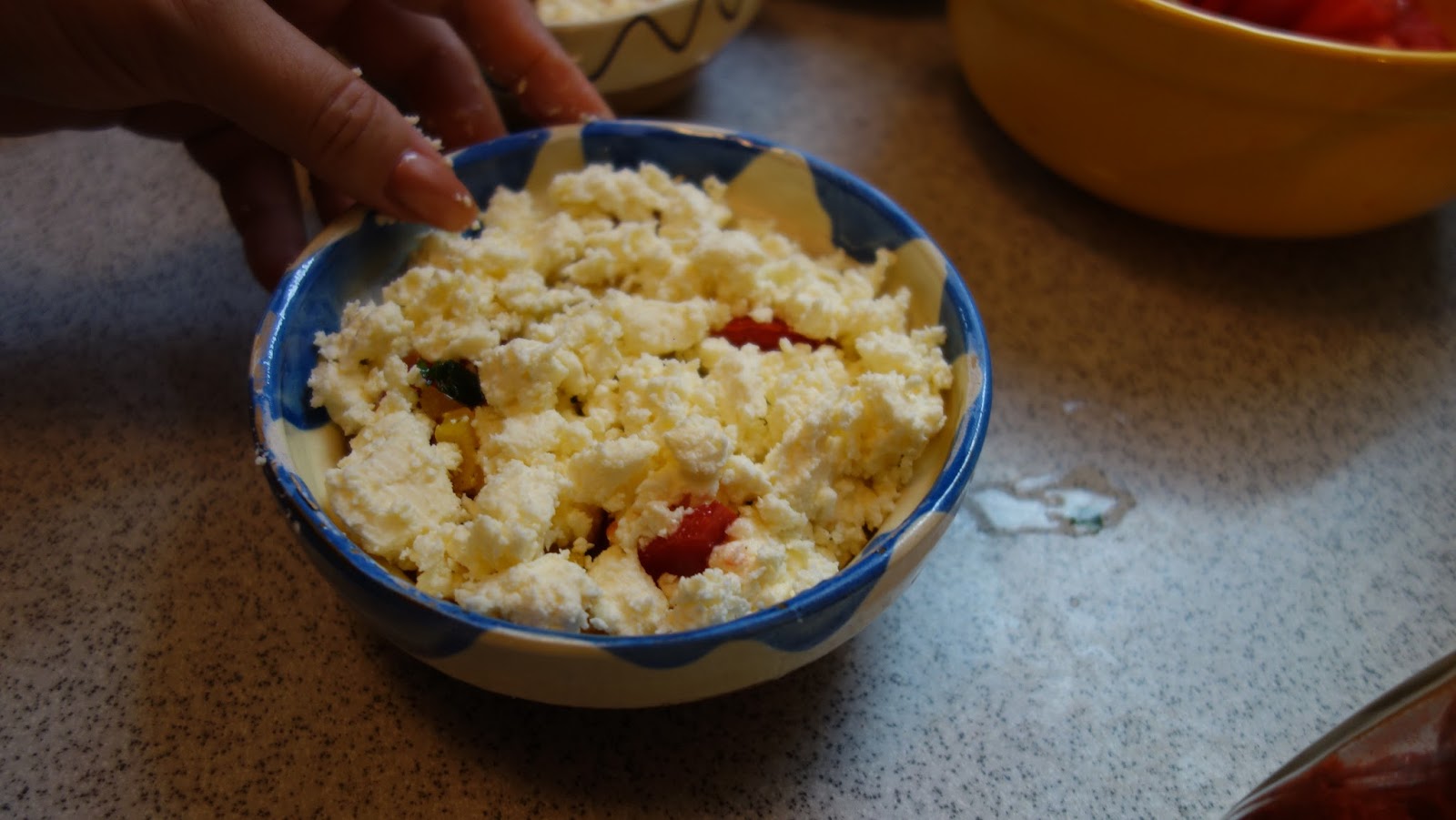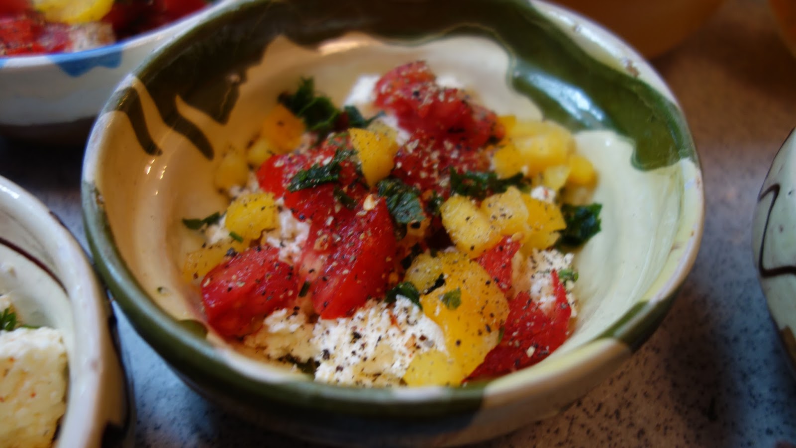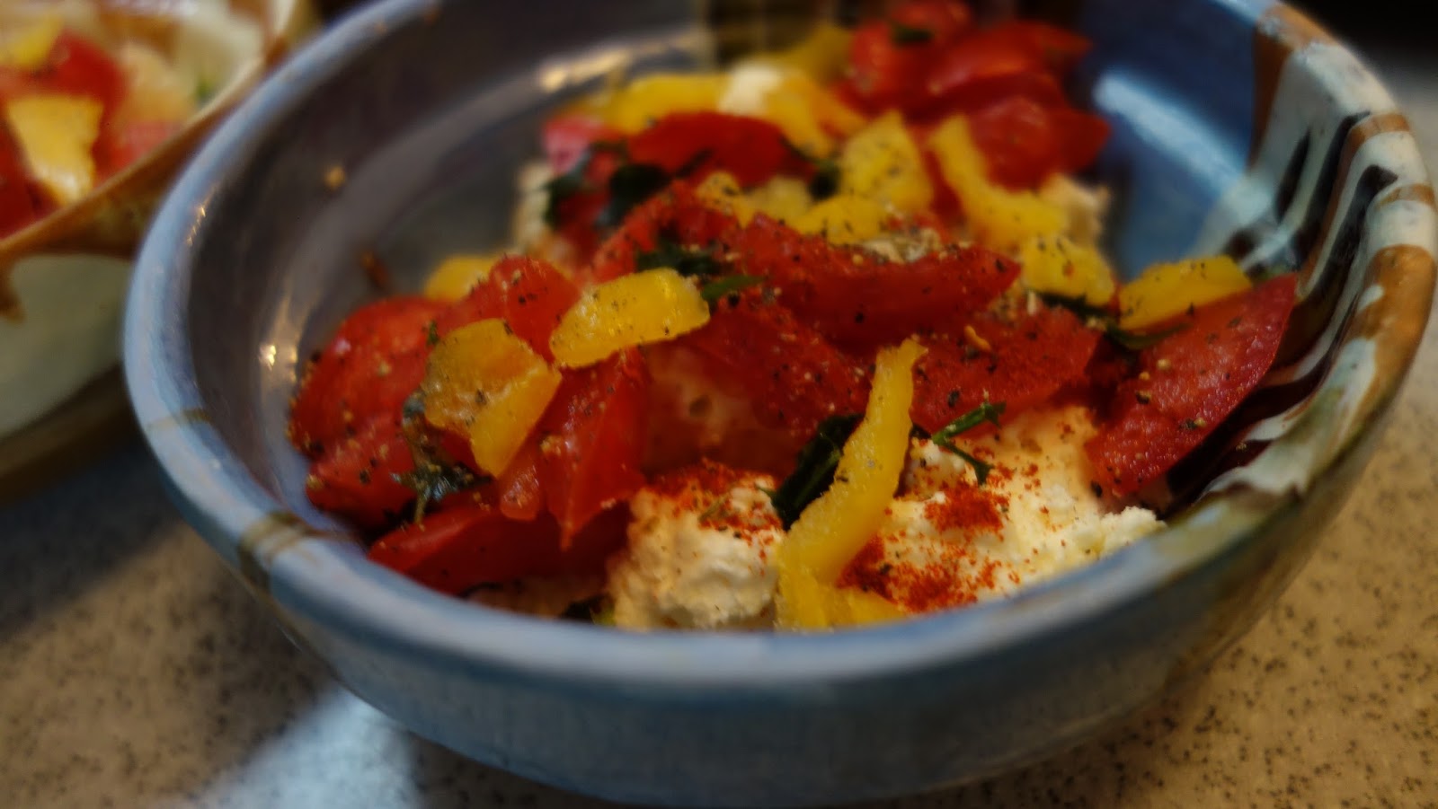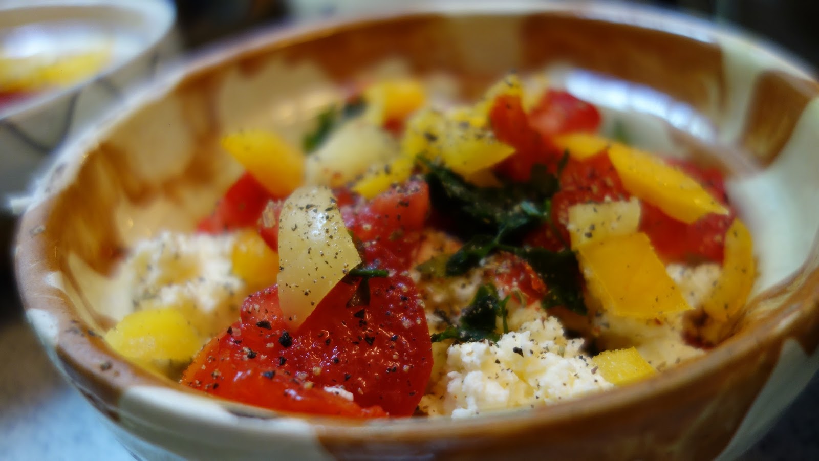 ividuale, se aseaza totul in straturi: branza, rosiile, ardeiul gras, patrunjelul, boiaua, uleiul de masline, piperul proaspat macinat, oregano uscat sau proaspat, sucul de la rosii se pune si el, chili, apoi eu am mai pus un rand de branza telemea zdrobita, un rand de rosii si am presarat cascaval pe deasupra si putin parmezan, foarte putin.